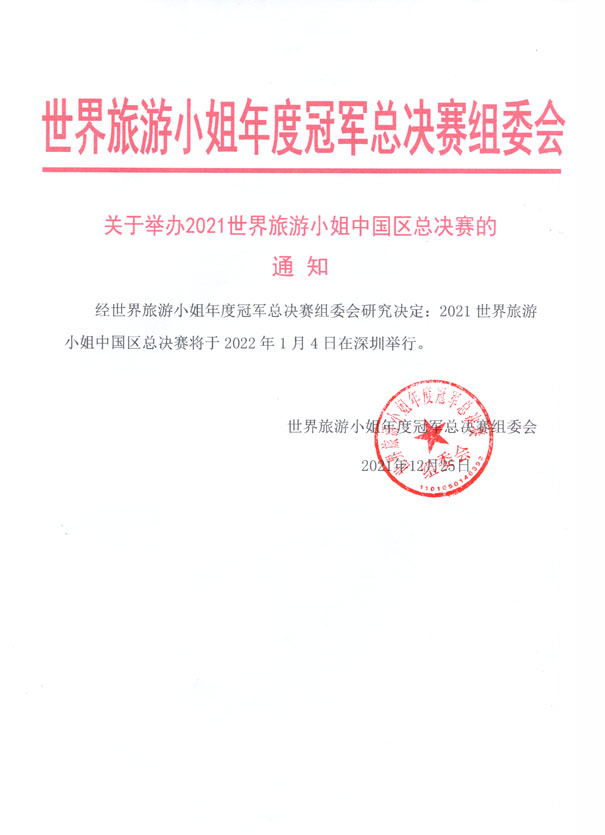 关于举办2021世界旅游小姐中国区总决赛的通知