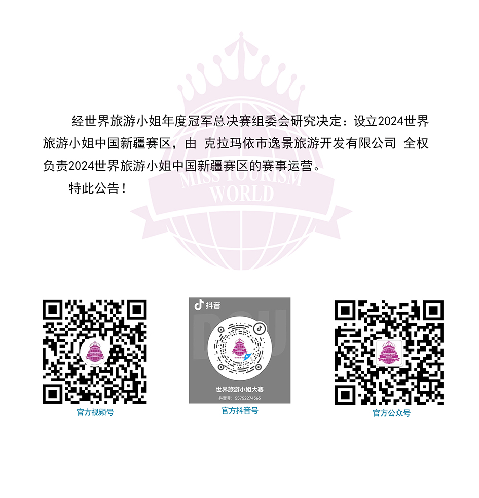 关于设立2024世界旅游小姐中国新疆赛区的通知
